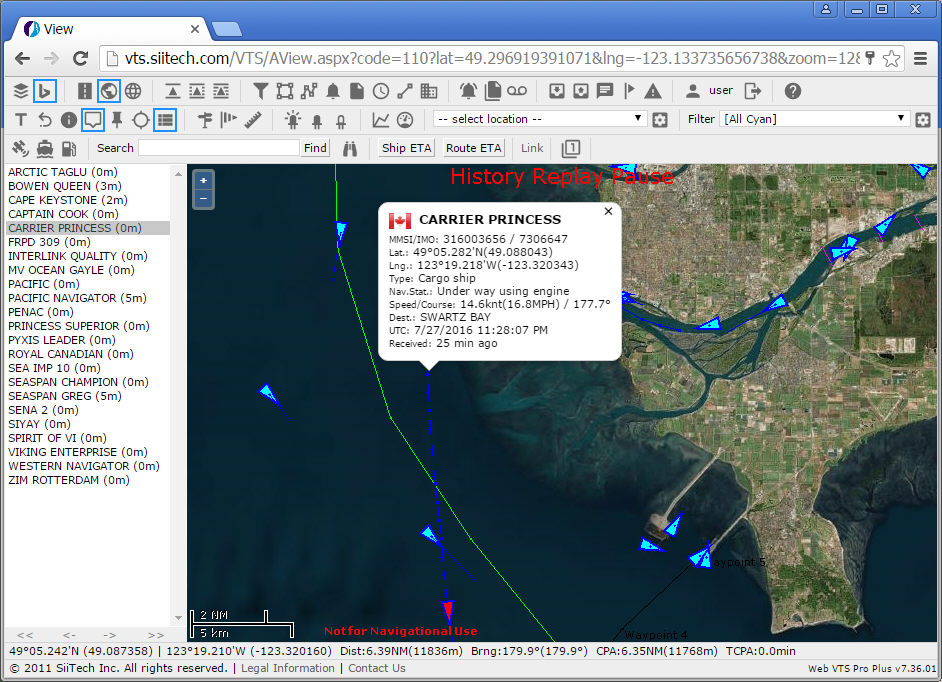 - Replay a ship's trip step-by-step in predefined time intervals