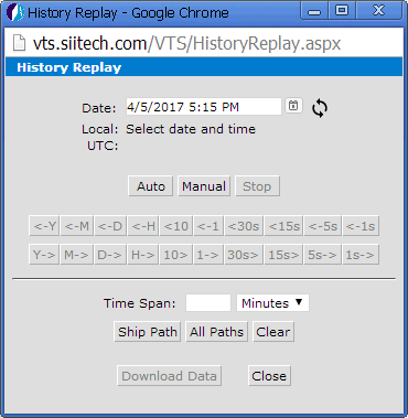 buttons to rewind through historic AIS data in predefined increments.
